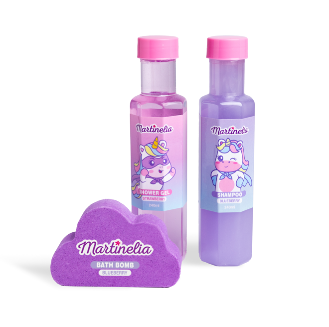 BATH FIZZER BLUEBERRY: SODIUM BICARBONATE. SODIUM SULFATE. CITRIC ACID. SODIUM CARBONATE. PERFUME (FRAGRANCE). CI 17200 (D&C RED NO.33). CI 42090 (FD&C BLUE NO.1)./ BODY WASH STRAWBERRY: AQUA (WATER). SODIUM LAURETH SULFATE. GLYCOL DISTEARATE. SODIUM CHLORIDE. SODIUM C14-16 OLEFIN SULFONATE. PHENOXYETHANOL. PERFUME (FRAGRANCE). DISODIUM EDTA. CITRIC ACID. CI 17200 (D&C RED NO.33)./ SHAMPOO BLUEBERRY: AQUA (WATER). SODIUM LAURETH SULFATE. GLYCOL DISTEARATE. SODIUM CHLORIDE. PHENOXYETHANOL. PERFUME (FRAGRANCE). DISODIUM EDTA. GUAR HYDROXYPROPYLTRIMONIUM CHLORIDE. CITRIC ACID. CI 17200 (D&C RED NO.33). CI 16035 (FD&C RED NO. 40).