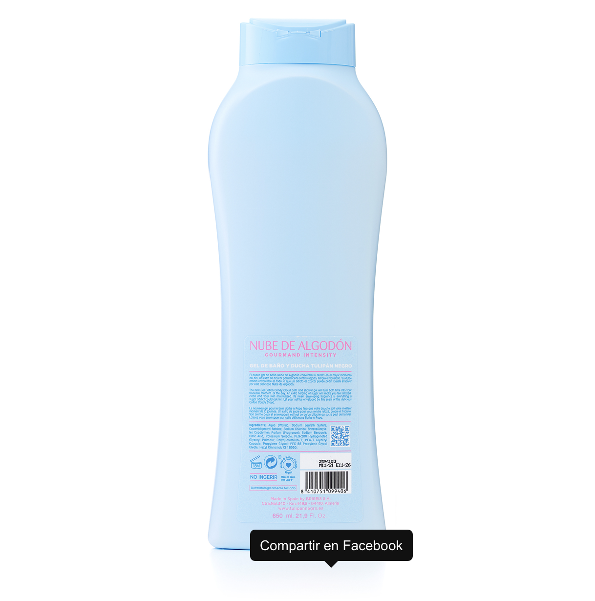 Relive your childhood with Algodón's Nube shower gel 650 ML , a fragrance inspired by cotton candy, light, sweet and irresistibly addictive.