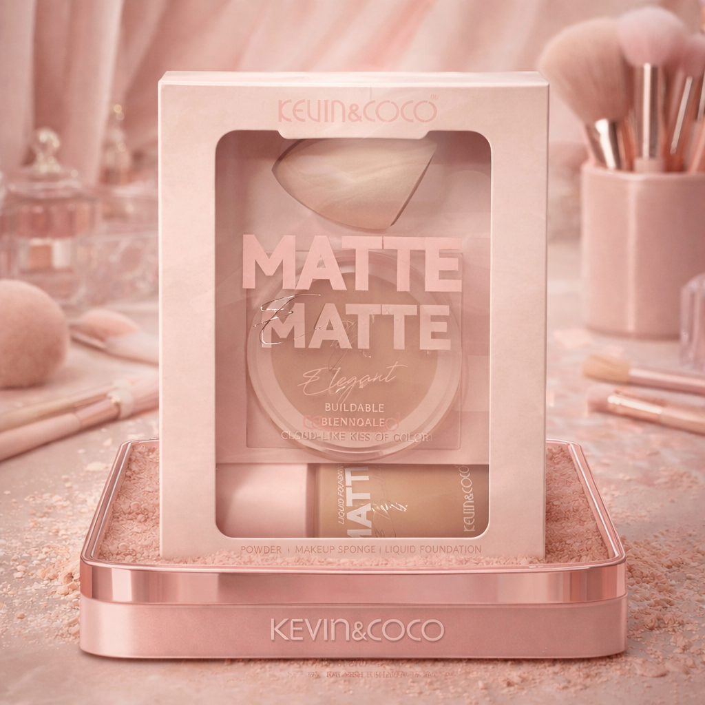 ๐ KEVIN & COCO Matte Elegant Complete Complexion Set โ 3-Piece Set (Powder + Liquid Foundation + Blender) | Wholesale 6-Piece Set