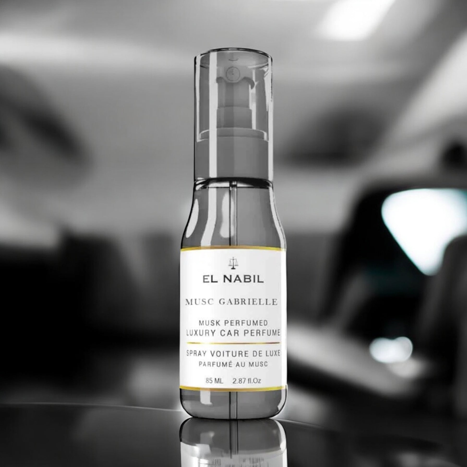 The Musc Gabrielle Car Spray 85 ml – EL NABIL is a captivating and refined ambient fragrance, designed to transform every journey into a moment of comfort and elegance 🚗✨.