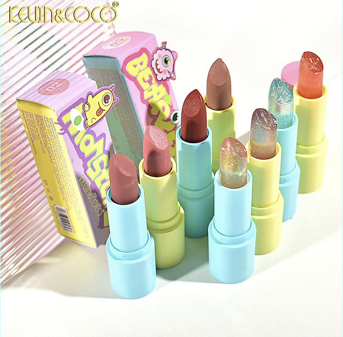Add an irresistible makeup display to your catalogue: the Magic Kevin & Coco Velvet Lipstick, offered in a pack of 32 units, ideal for boutiques, e-commerce and seasonal sales 💼✨.