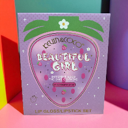 The Strawberry Kevin & Coco Lip Set 🍓💄 is an ultra cute set combining a high-shine gloss and a cream-matte lipstick.