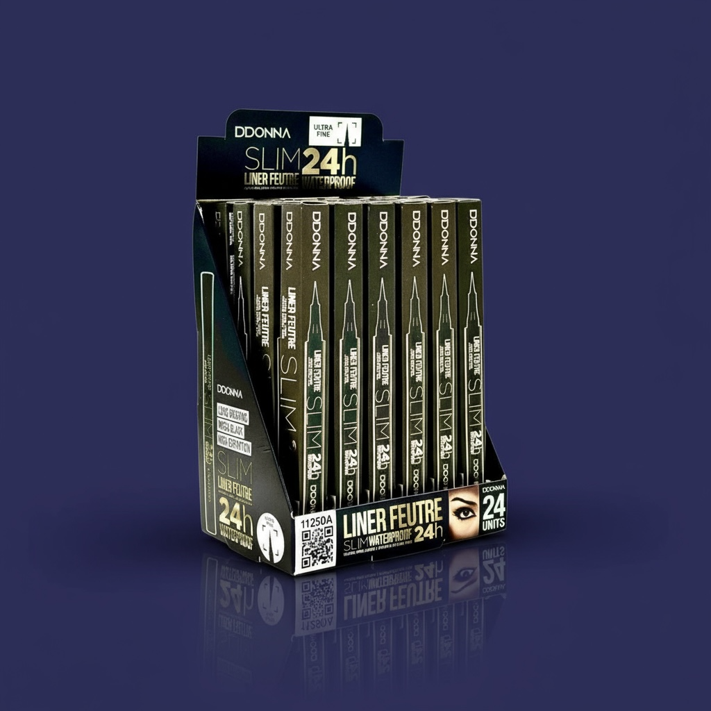 Vendu en présentoir de 24 pièces, chaque eyeliner est soigneusement conditionné dans son étui individuel, garantissant une hygiène optimale. Sa pointe ultra-fine permet de tracer des lignes nettes et définies, idéales pour un maquillage délicat ou plus audacieux selon les envies.