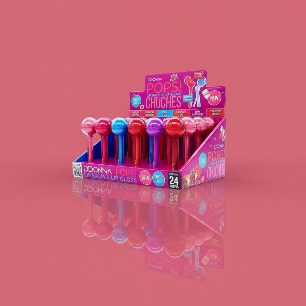 Lot de 24 gloss & baume lèvres pops candy d'donna 12289B