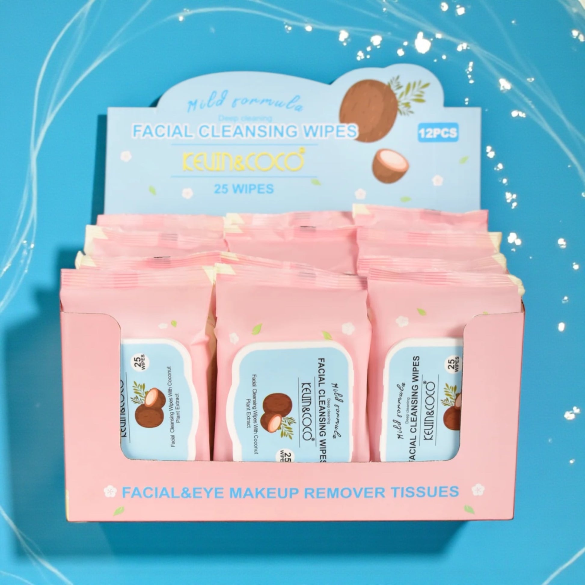 🥥 Lingettes Nettoyantes Visage à l’Extrait de Plantes & Coconut – Kevin & Coco – 25 Lingettes (Lot de 12)