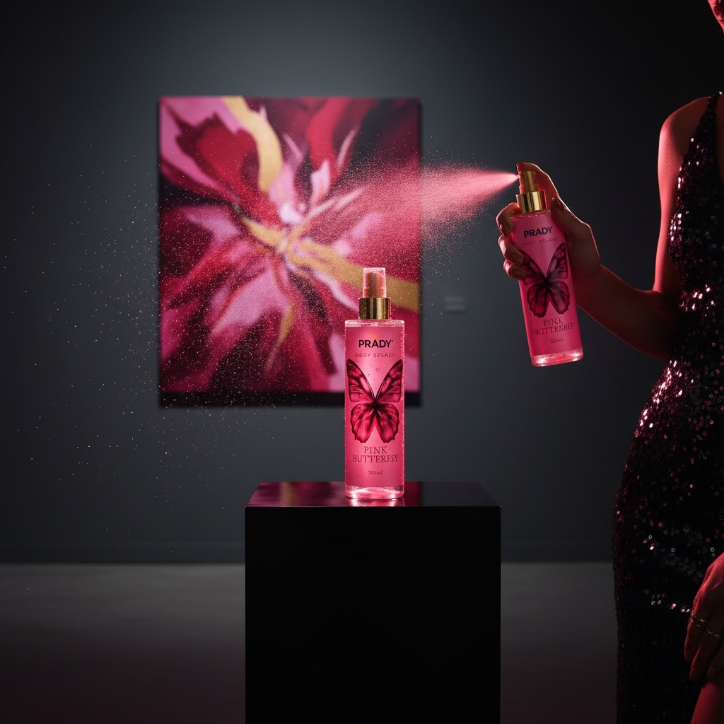 La brume Pink Butterfly de Prady est une invitation à la féminité, à la gourmandise et à la sensualité. Conçue pour parfumer délicatement le corps et les cheveux, elle diffuse une fragrance chaude, sucrée et enveloppante, idéale pour celles qui aiment les sillages affirmés mais légers.