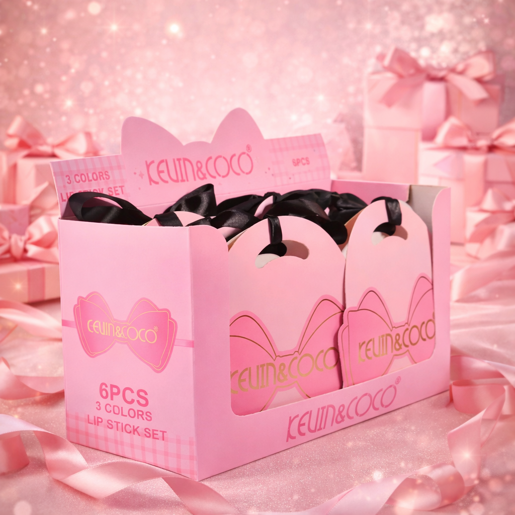 💄 Kevin & Coco Bow-Tie 3-Piece Lipstick Set – Coffret 3 Rouges à Lèvres Assortis – Présentoir Revendeur x6 – KC1188