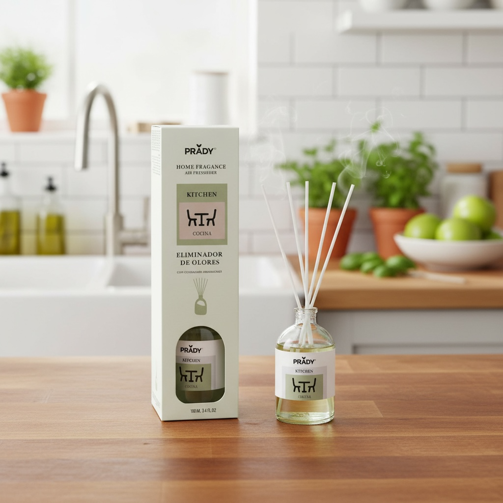 💎 Diffuseur Mikado Éliminateur d’Odeurs Cuisine – Parfum d’Ambiance 100 ml | Lot de 6 – Prady 💎