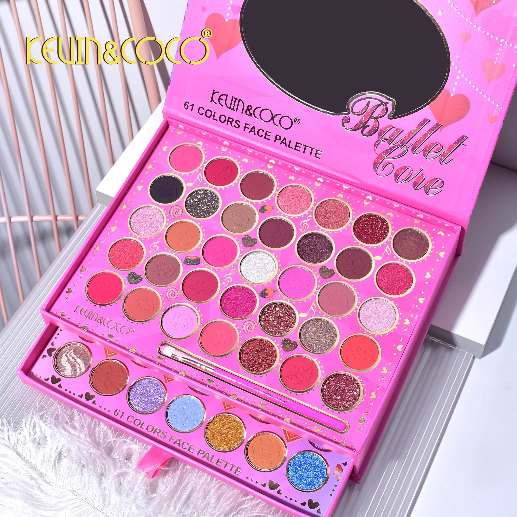 Plongez dans un univers girly et créatif avec la palette Ballet Girl de KEVIN & COCO, un coffret ingénieux sur deux niveaux offrant un total de 61 teintes pour maquiller vos yeux et illuminer votre visage.